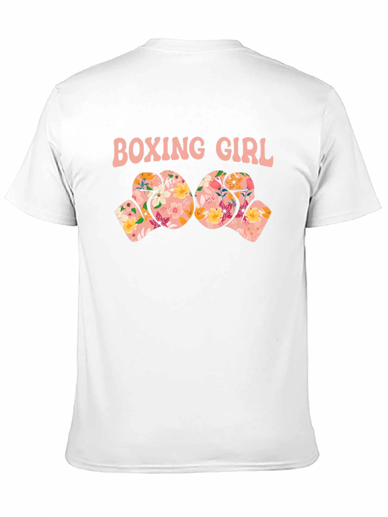 Show off your love for boxing with this stylish graphic t-shirt. This black tee features the words "Boxing Girl" in a playful pink font above two boxing gloves decorated with a colorful floral pattern. The soft fabric offers all-day comfort, making it perfect for workouts, casual outings, or lounging at home. Pair it with jeans, shorts, or leggings for a sporty and fashionable look. This unique design is sure to turn heads and make a statement wherever you go. Express your passion for the sport with this eye-catching and trendy t-shirt.