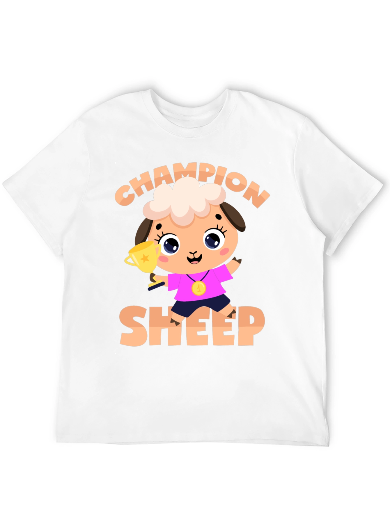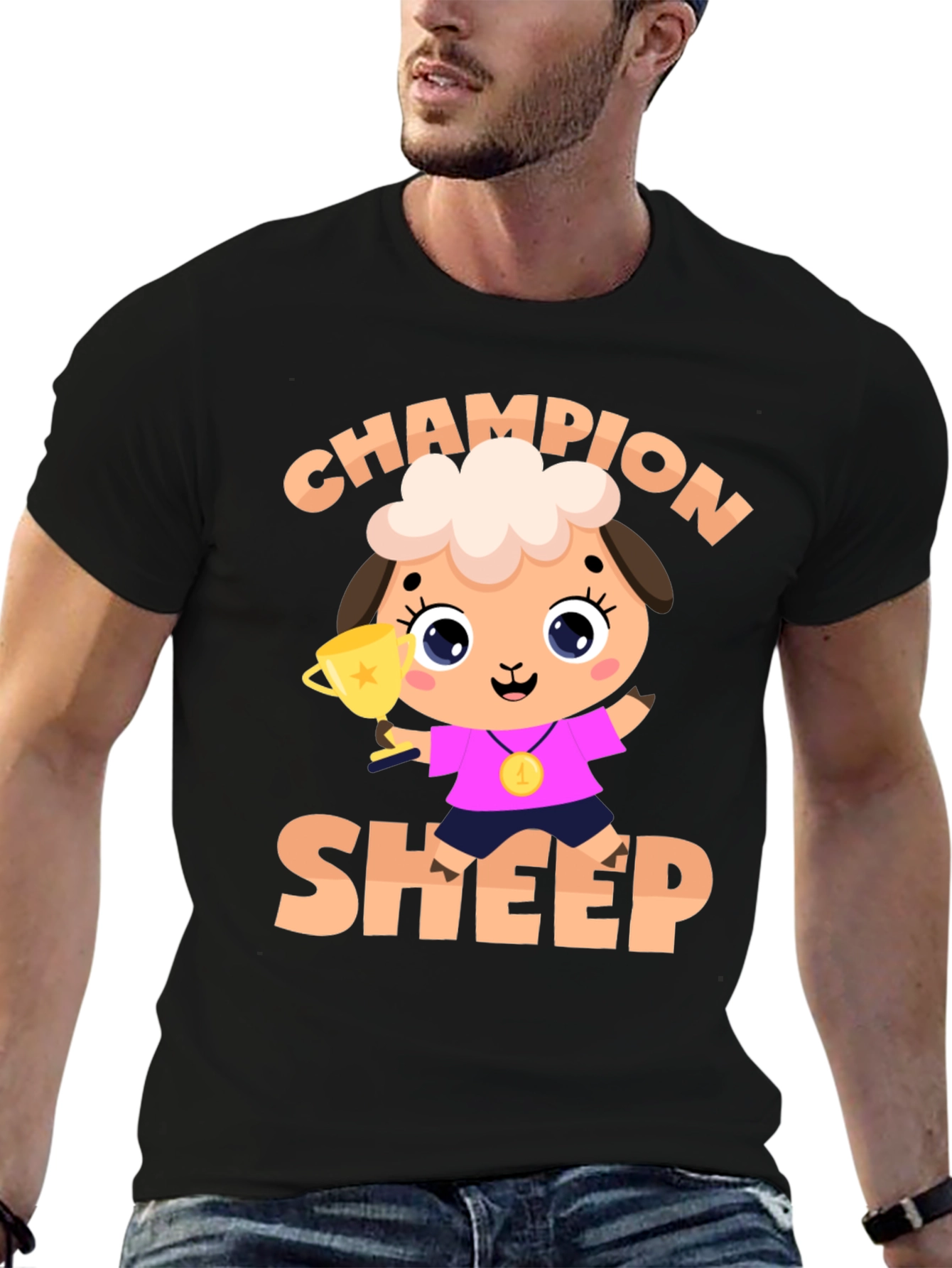 Show off your love for all things adorable with this Champion Sheep graphic t-shirt. This black tee features a cartoon sheep holding a gold trophy, perfect for those who love quirky and playful designs. Made from comfortable material, this tee is ideal for casual wear. The bold "CHAMPION SHEEP" text ensures you stand out from the crowd. Great for everyday style or a fun gift idea.