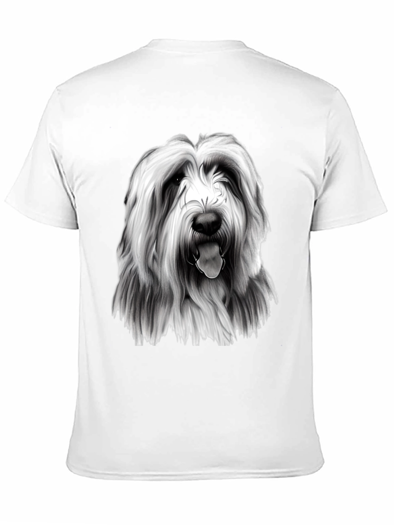 Show off your love for dogs with this unique graphic t-shirt. Featuring a black and white print of a furry dog breed, this tee is both stylish and comfortable. The design showcases the dog's distinctive long fur and endearing expression. Made from a soft and breathable fabric, this shirt is perfect for everyday wear. Pair it with jeans or shorts for a casual look, or dress it up with a jacket for a night out. A must-have for any dog lover's wardrobe, this t-shirt is sure to turn heads and spark conversations wherever you go.