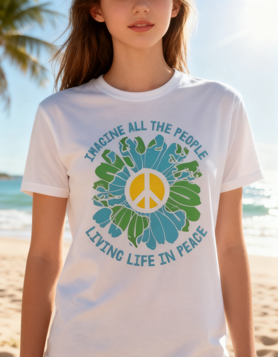 "Imagine Peace" Earth Flower Graphic Tee