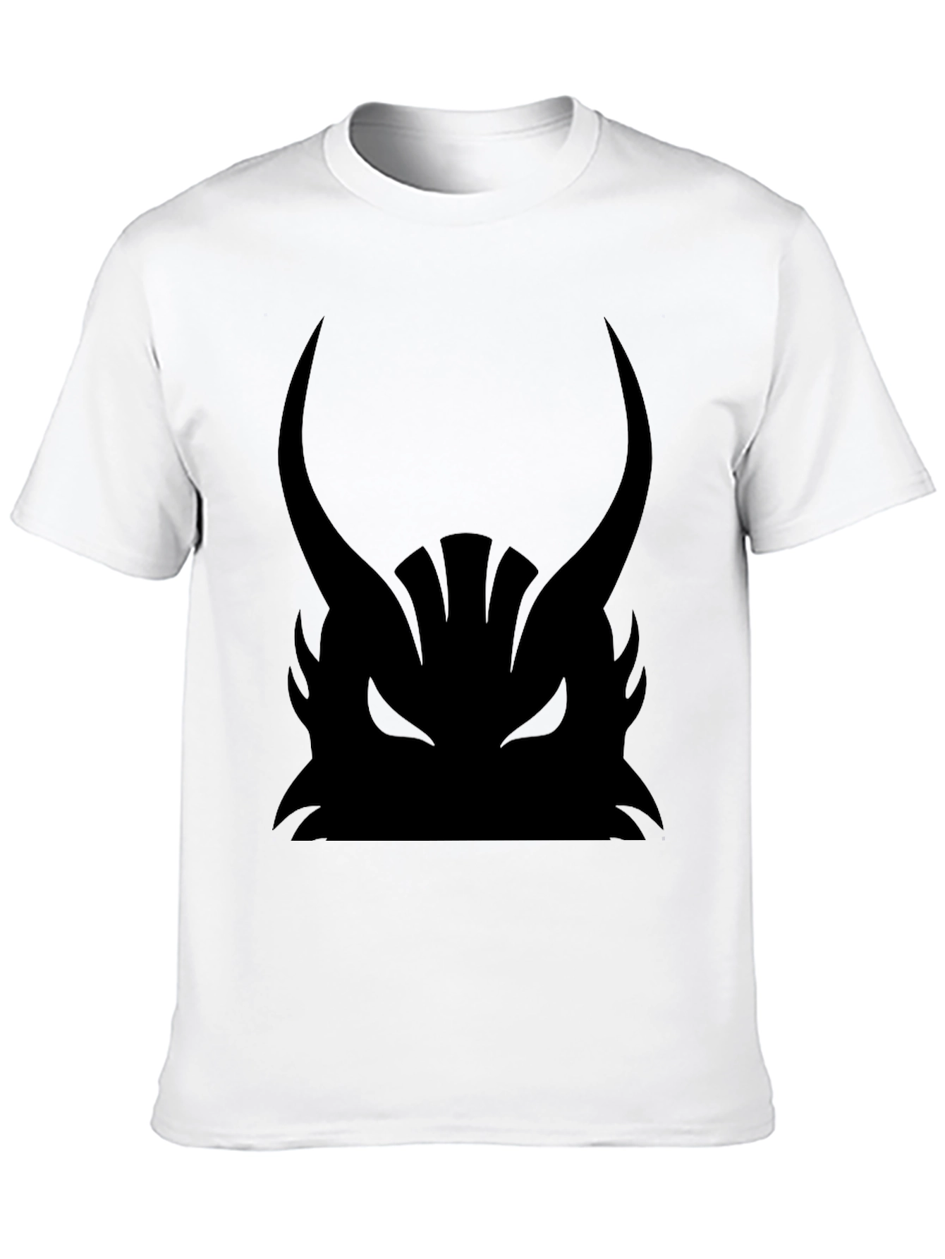 Make a bold statement with this striking men's black graphic tee. The shirt features a distinctive samurai helmet design in a solid black silhouette, creating a powerful and mysterious aesthetic. Constructed from a comfortable, breathable fabric, this tee is perfect for everyday wear. Its classic fit and short sleeves offer versatility, making it an ideal choice for casual outings, concerts, or simply lounging at home. Showcase your unique style with this eye-catching and effortlessly cool tee. The striking graphic and comfortable fit make this T-shirt a must-have in any modern man's wardrobe. Pair it with jeans, shorts, or chinos for a variety of stylish looks.