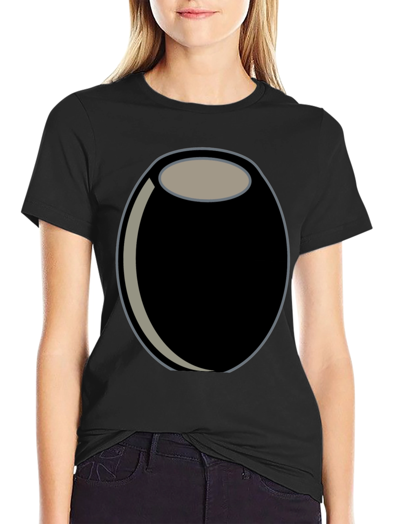 This trendy black t-shirt features a bold, stylized graphic of an olive, complete with a grey pit detail and a subtle outline. The design is simple yet eye-catching, making it a versatile addition to any casual wardrobe. Crafted from a soft, comfortable fabric, this tee offers a relaxed fit that's perfect for everyday wear. Whether you're running errands, meeting friends for coffee, or simply lounging at home, this olive t-shirt is sure to make a statement. Pair it with jeans, shorts, or even a skirt for a laid-back yet fashionable look. Show off your unique sense of style with this fun and quirky graphic tee!
