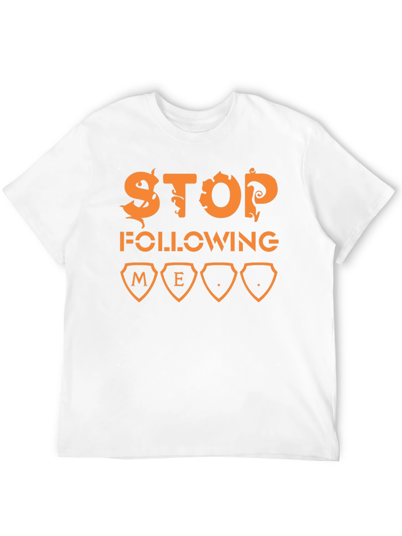 Make a statement with this bold black t-shirt. The shirt features a playful "Stop Following Me" graphic in a stylized orange font. The design is eye-catching and sure to get a reaction. Made from a comfortable, breathable fabric, this tee is perfect for everyday wear. Dress it up or down, it’s versatile for casual outings, social gatherings, or simply relaxing at home. If you want to get a laugh and enjoy a comfy t-shirt, this is it!